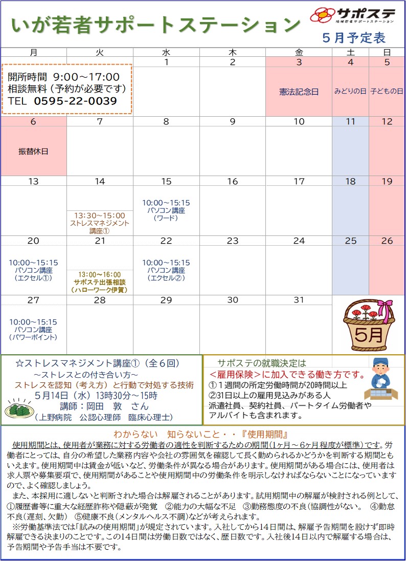 🎏5月の予定表をUPします。