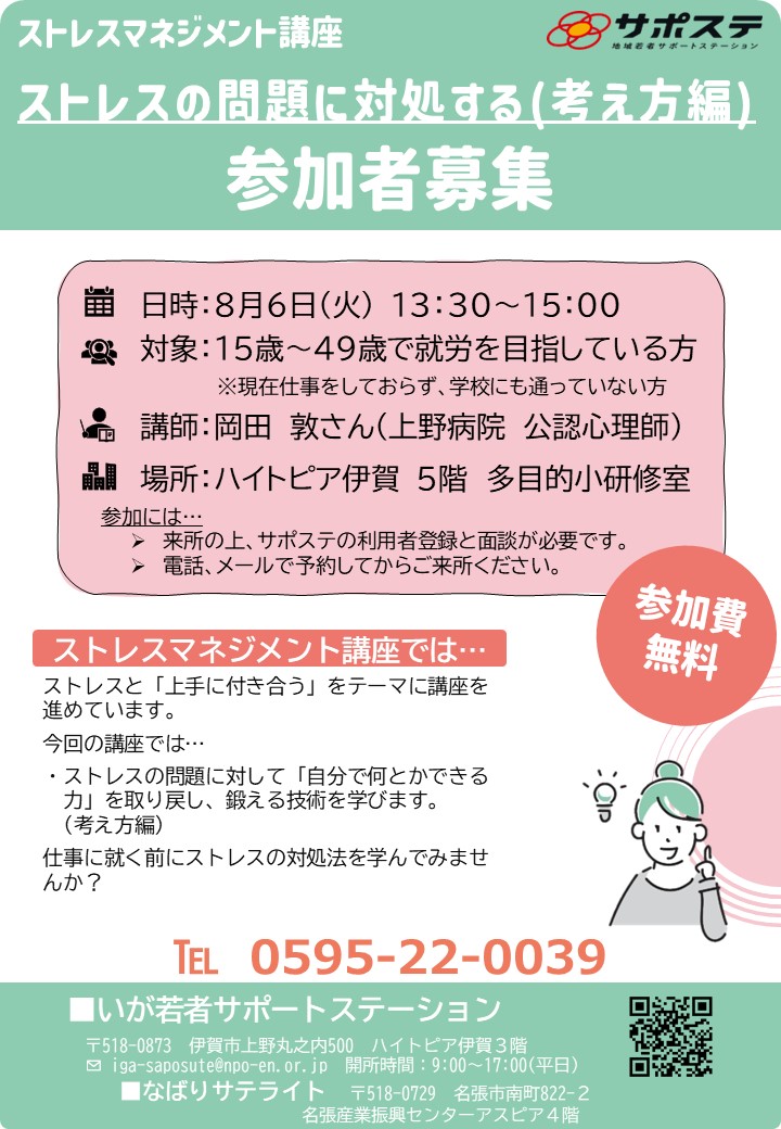 🌻8月ストレスマネジメント講座の参加者募集中