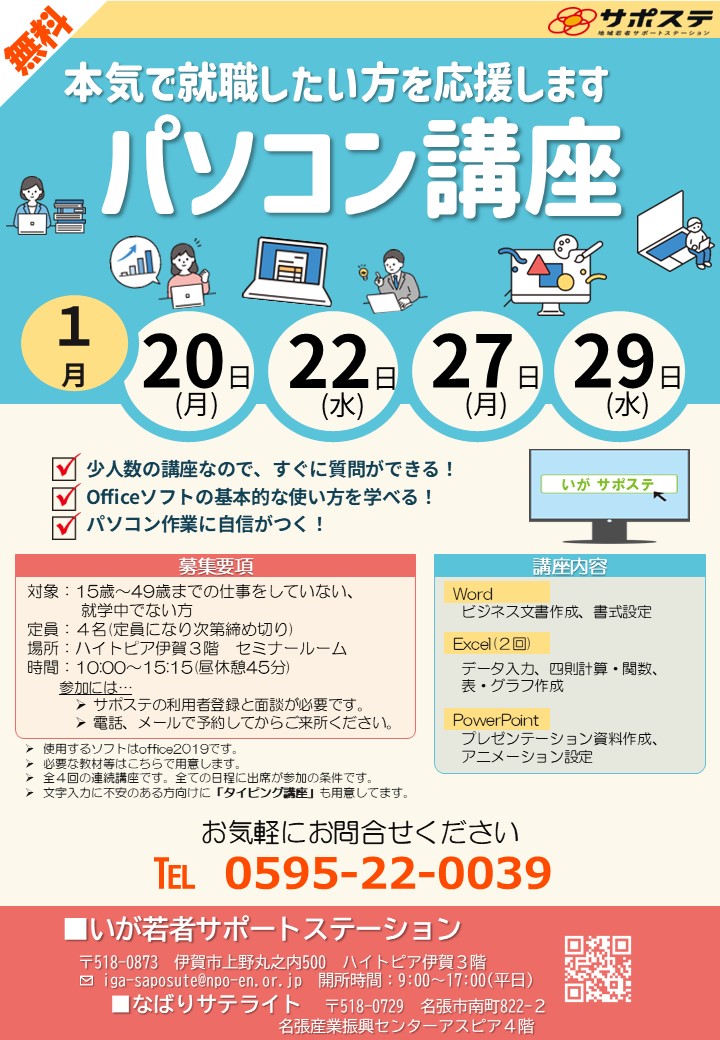 💻1月パソコン講座の参加者を募集します