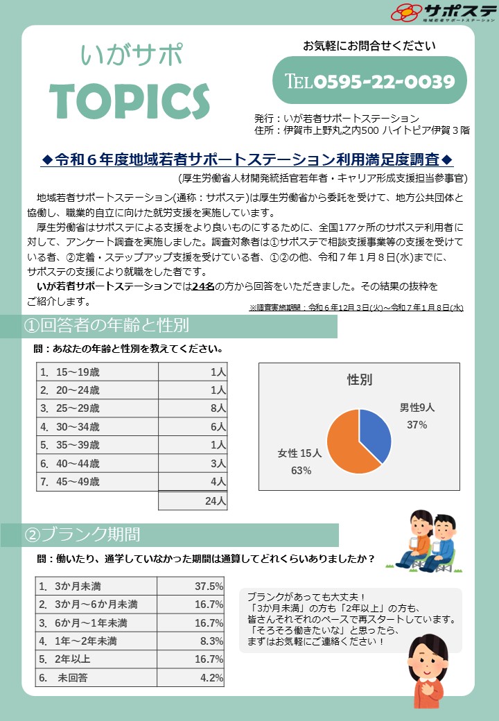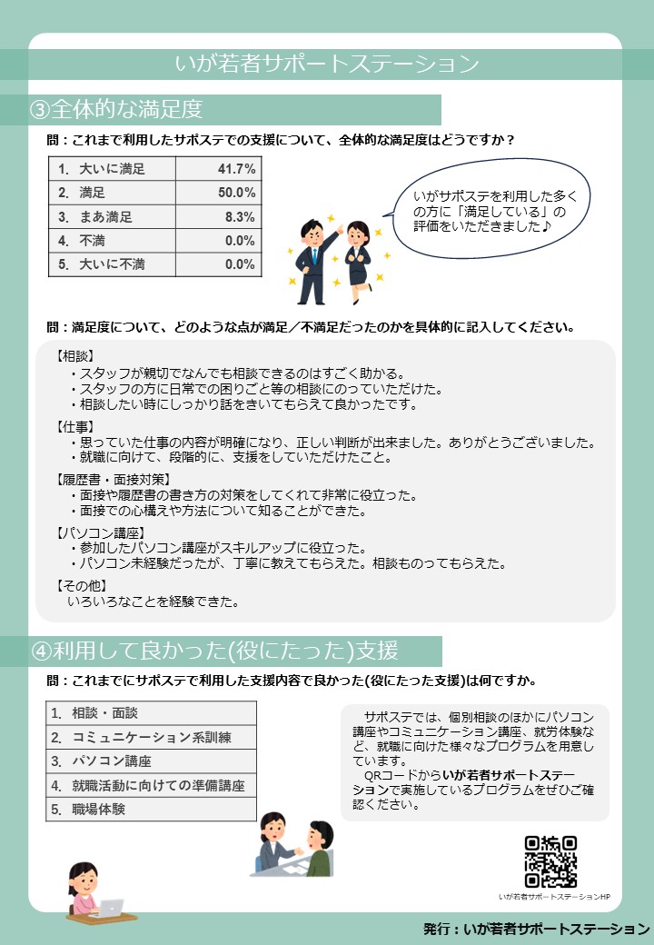 お知らせ いがサポTOPICS 2025年3月18日 いがサポTOPICS【令和6年度地域若者サポートステーション利用満足度調査特集】 TOPお知らせいがサポTOPICS【令和6年度地域若者サポートステーション利用満足度調査特集】 今回のTOPICSは、令和6年度地域若者サポートステーション利用満足度調査特集です。 サポステで働く一歩を踏み出そうとしているみなさんのご連絡をお待ちしています。 お問い合わせはこちら バックナンバーはこちらから確認できます。 前の記事 次の記事 記事一覧に戻る