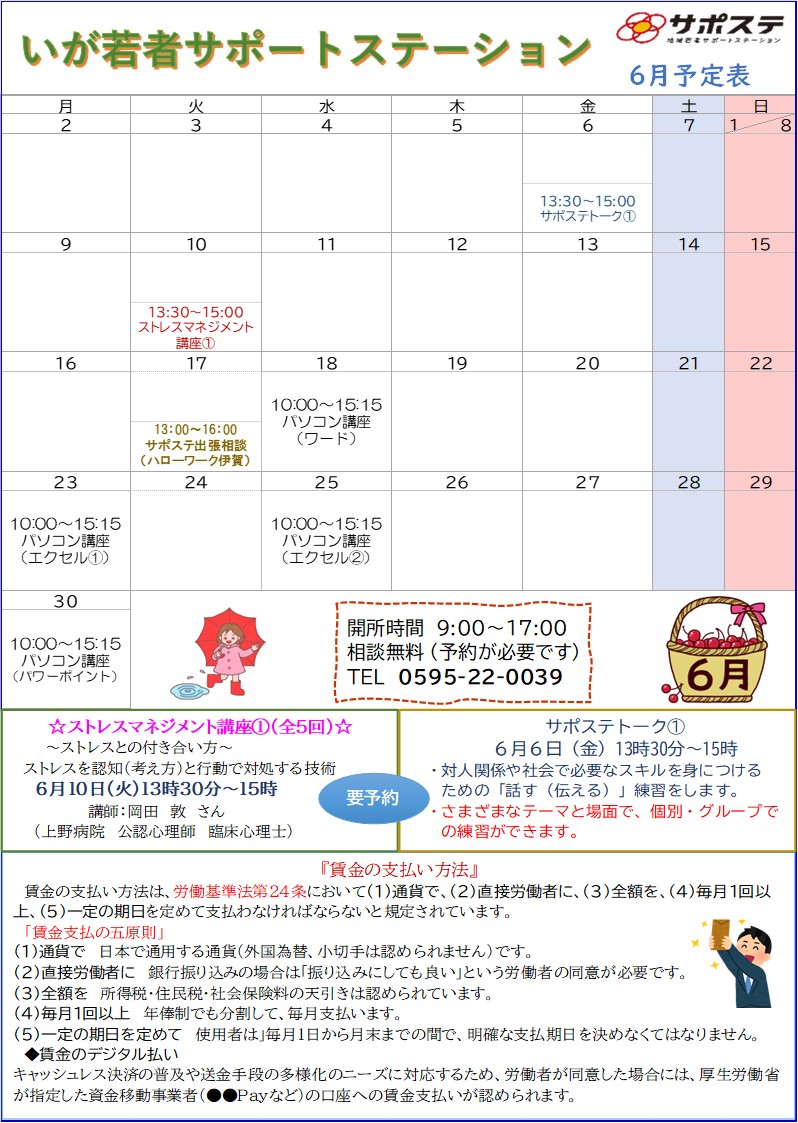 お知らせ 月間予定表 2025年6月2日 ☔6月の予定表をUPします。 TOPお知らせ☔6月の予定表をUPします。 梅雨の季節となりました。湿度が高く、体調を崩しやすいので、水分補給などを心がけましょう。 前の記事 次の記事 記事一覧に戻る