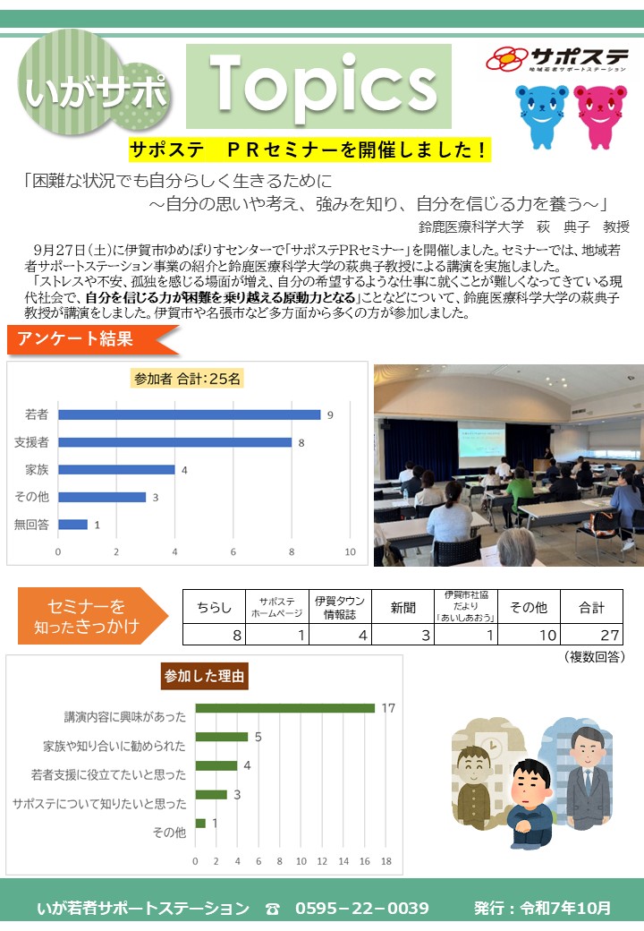 お知らせ いがサポTOPICS 2025年10月15日 🖼10月トピックスを発行しました。 TOPお知らせ🖼10月トピックスを発行しました。 10月のトピックスは、9月27日に実施した「サポステPRセミナー」のアンケートをまとめました。ご参加いただきましたみなさま、ありがとうございました。 前の記事 次の記事 記事一覧に戻る